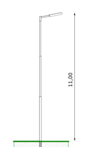 Straight pole, 12 meters tall, with a removable 1 meter straight arm.