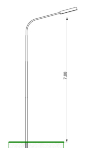 Straight Pole, 8 meters tall, with a 0.5 meter curved arm.