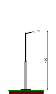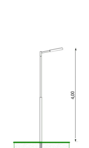Straight pole, 4 meters tall, with a removable 0.3 meter straight arm and a 30×30 base.