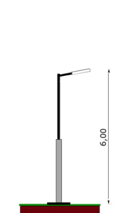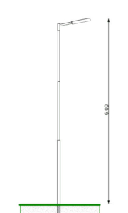 Straight pole, 6 meters tall, with a removable 0.5 meter straight arm and a 30×30 base.